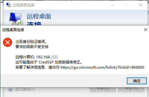 Windows10系统中远程连接服务器的时候出现如下错误的提示: